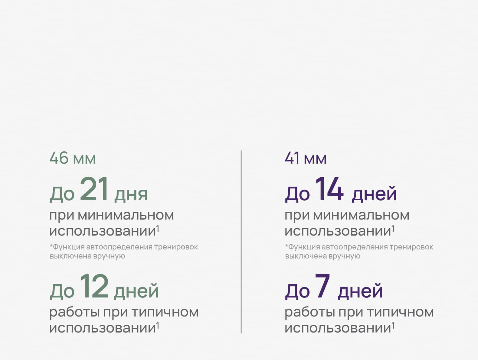 Благодаря энергоэффективной системе HUAWEI WATCH GT 6 способны работать до 21 дня без подзарядки, что делает их идеальными спутниками как для спорта, так и для повседневной жизни. Их элегантный дизайн гармонично сочетается с любым стилем, а множество вариантов ремешков позволяют подчеркнуть индивидуальность.