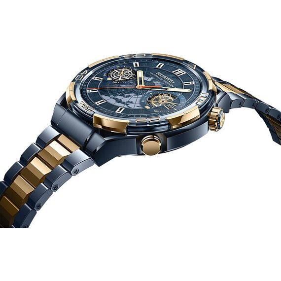 HUAWEI WATCH ULTIMATE DESIGN — это ваша безопасная гавань в бурных морях. Сапфировый керамический безель из нанокристаллов, напоминающий руль, и шесть вставок из 18-каратного золота — сияющие маяки, которые проведут вас сквозь ночь! Наденьте их на запястье — они готовы произвести фурор!