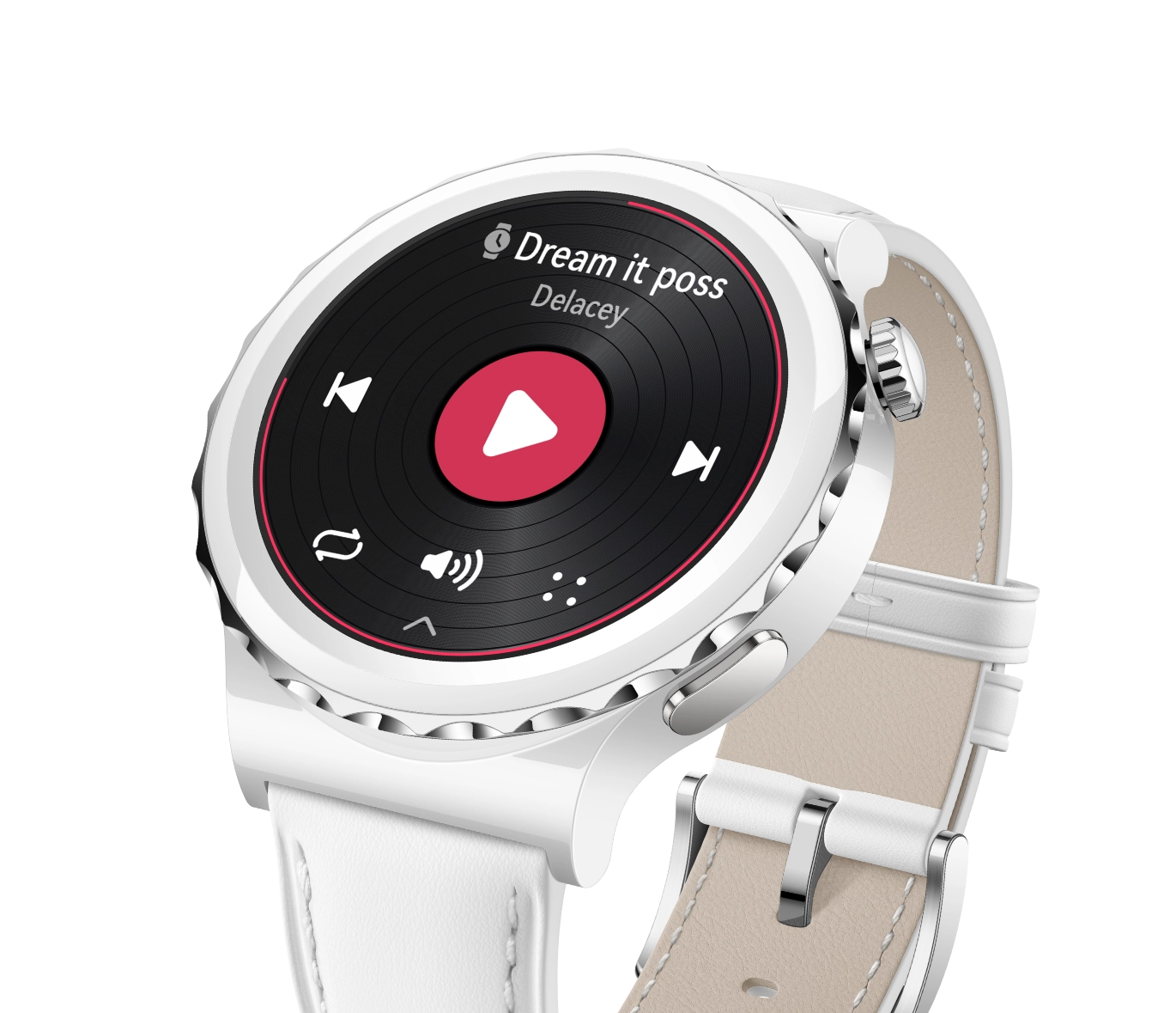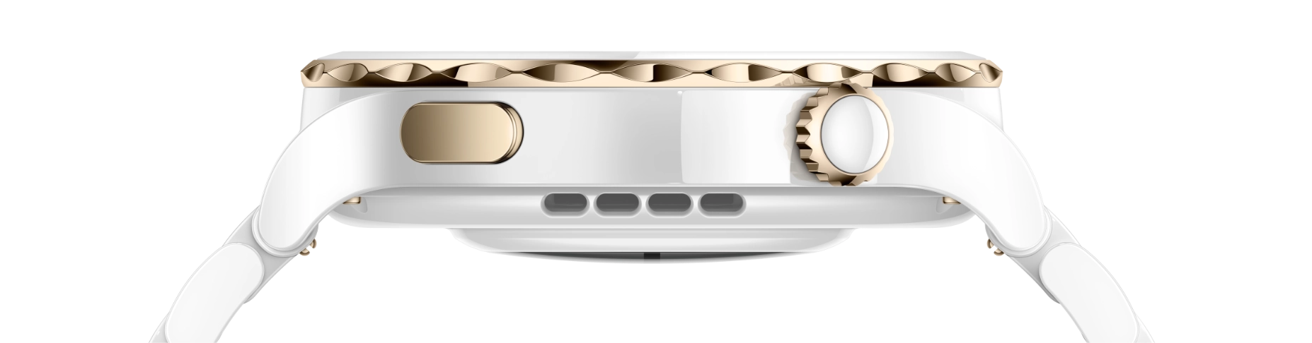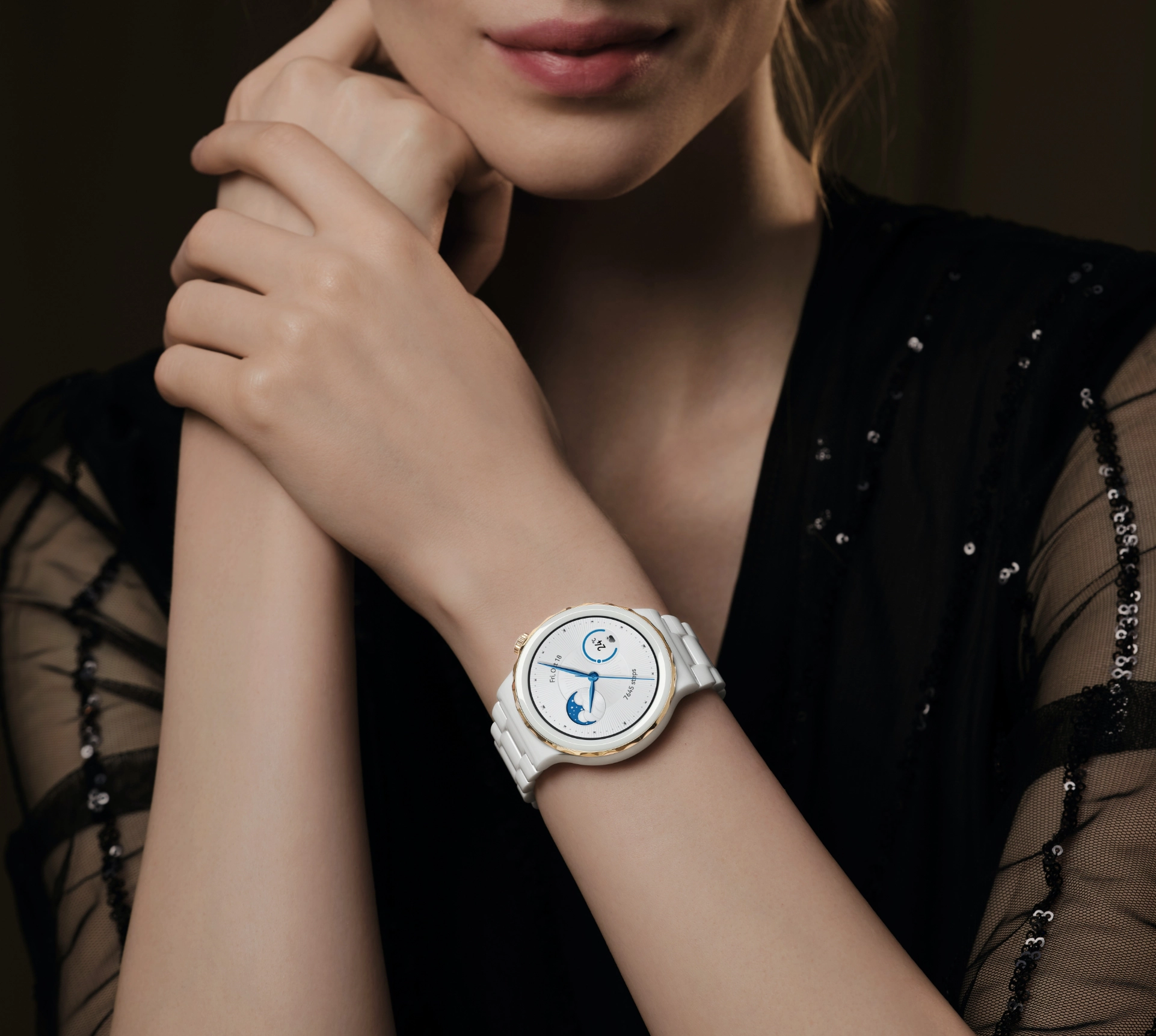 Умные часы представлены в двух версиях: с золотистым безелем и белым керамическим ремешком и с серебристым безелем и белым кожаным ремешком4 . Обе версии выглядят стильно и элегантно.