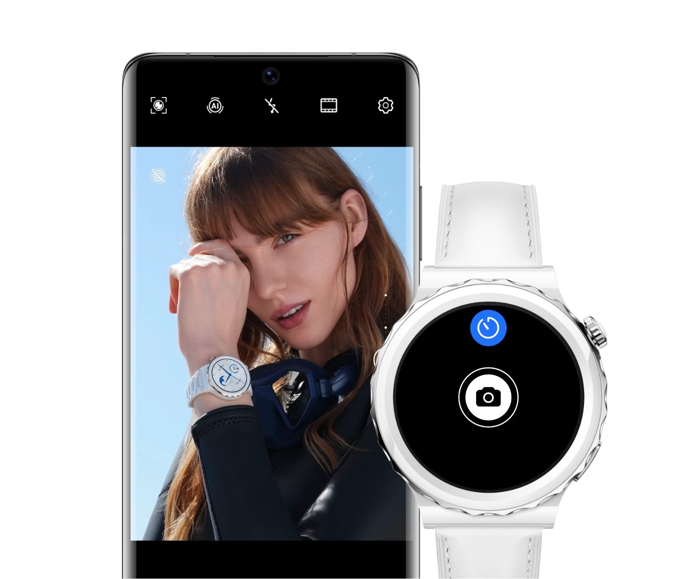 Управляйте фотосъемкой с помощью смарт-часов12 и запечатлейте важные моменты вашей жизни одним касанием запястья.