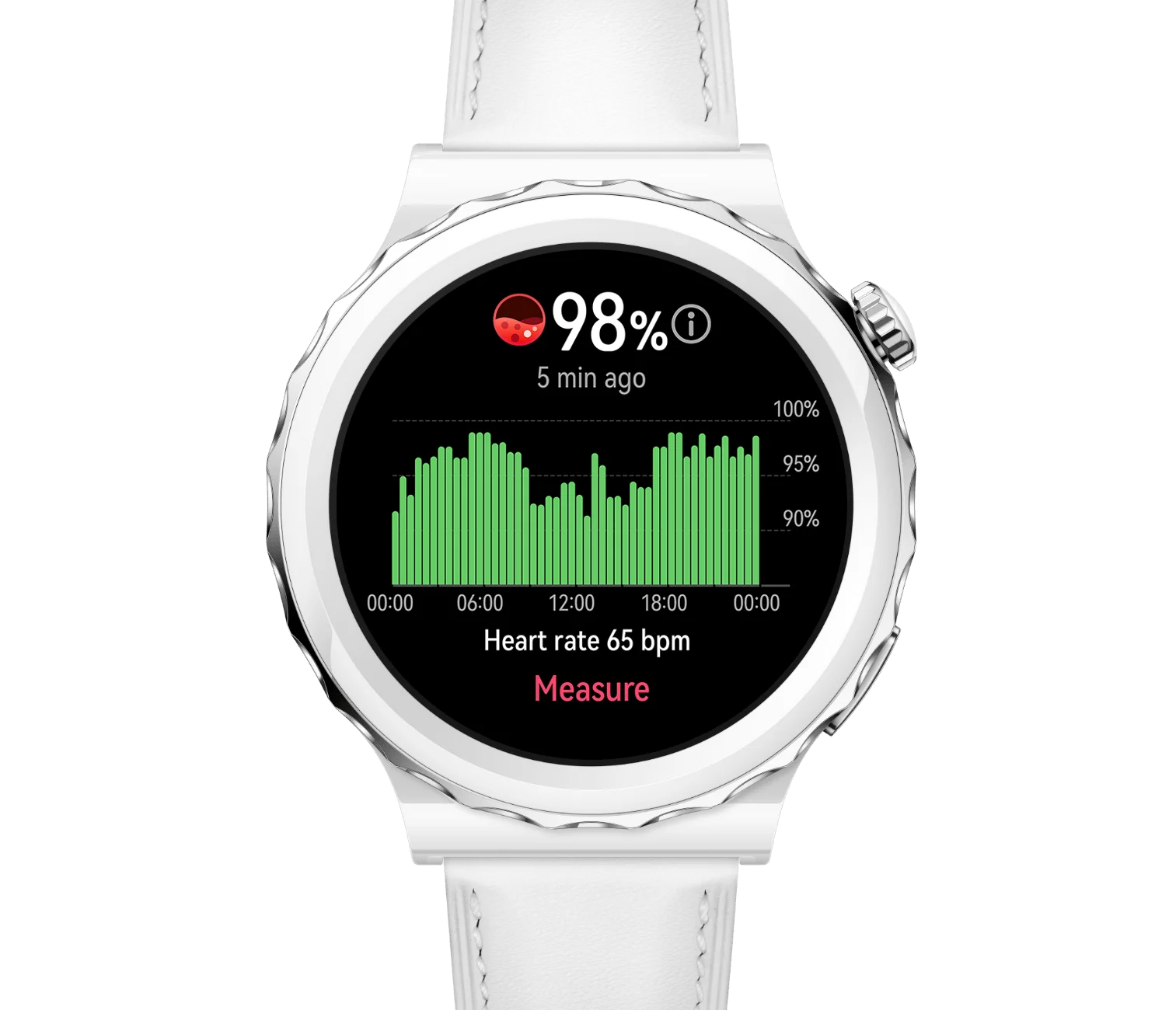 Часы оснащены высокопроизводительным датчиком для снятия ЭКГ, анализа данных в режиме реального времени и отслеживания синусового ритма. Часы также позволяют получать информацию о риске возникновения фибрилляции предсердий и предсердной или желудочковой экстрасистолии и помогают предотвратить возникновение распространенных сердечных заболеваний. Использование передовых технологий в электроде часов обеспечивает точность измерений. Умные часы с электродом с вакуумным покрытием и изогнутой задней панелью из прозрачного сапфирового стекла плотно прилегают к запястью. Удерживайте палец на электроде в течение 30 секунд, и на экране устройства в режиме реального времени отобразится результат измерения.
