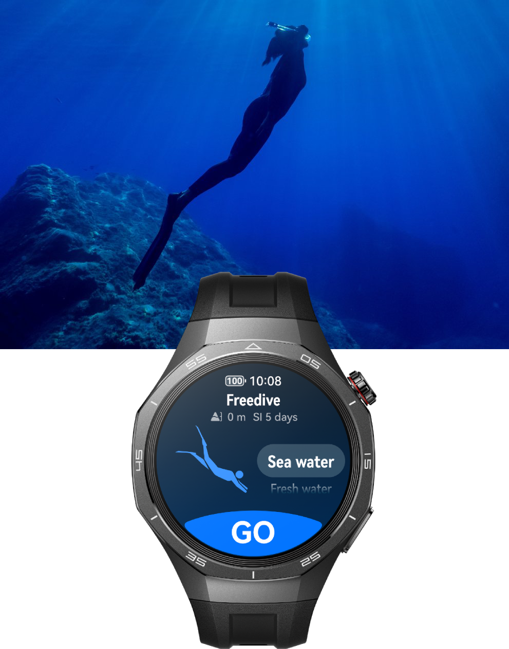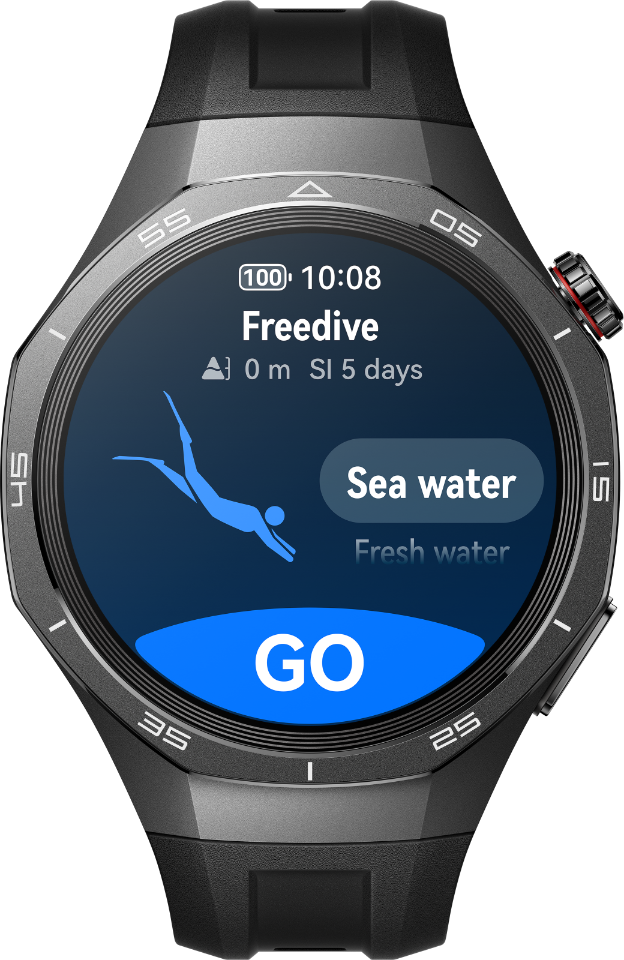 Часы можно использовать при погружениях в режиме фридайвинга на глубину до 40 метров.6 При этом вам доступны такие профессиональные функции, как таймер времени зависания, определение типа воды, напоминания и предупреждения для безопасного погружения, тренировка и тест апноэ, направленные на развитие выносливости.