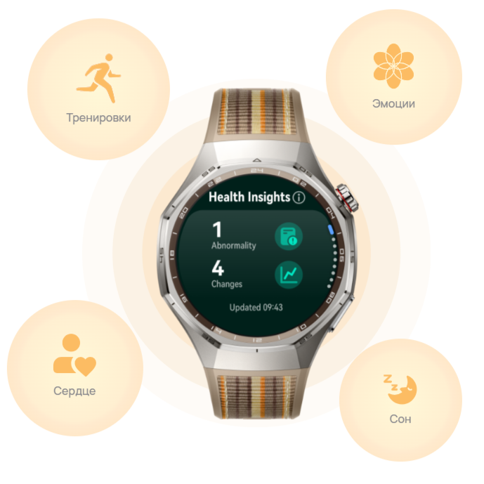Новая версия системы HUAWEI TruSense отличается более высокой точностью и скоростью работы, а также более комплексным подходом к измерению показателей. Она обеспечивает более полное представление о вашем эмоциональном состоянии, режиме сна и многом другом, чтобы вы могли по-новому заботиться о своем здоровье.