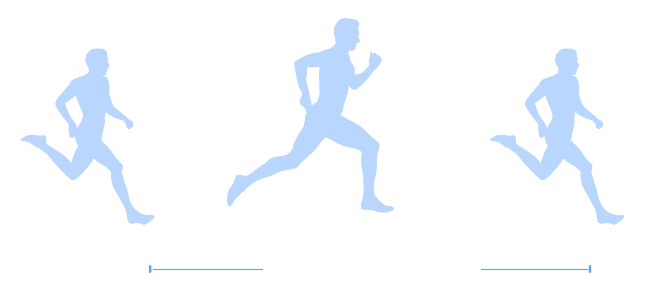 Однако слишком низкое вертикальное колебание способствует уменьшению времени в воздухе, из-за чего уменьшается длина шага и снижается скорость. Поэтому поддержание низкого уровня вертикальных колебаний при большом шаге — одна из важных целей опытных бегунов. Когда два бегуна бегут в одинаковом темпе, бегун с меньшим вертикальным колебанием имеет более высокую эффективность бега, более низкую нагрузку на мышцы и меньший риск возникновения усталости и/или травм.